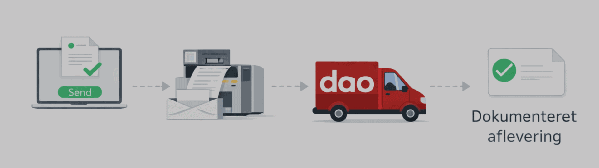 Efter PostNords ophør med brevomdeling ved årsskiftet har vi arbejdet målrettet på en ny løsning til håndtering af breve med produktion hos PostNord Strålfors og levering via DAO med fuld dokumentation.